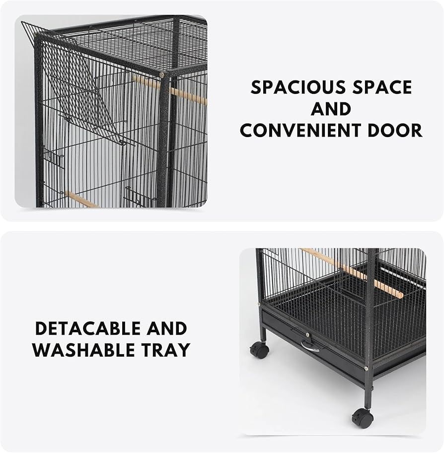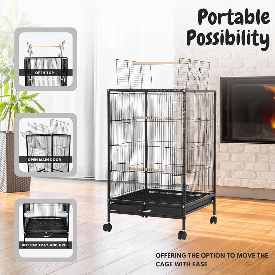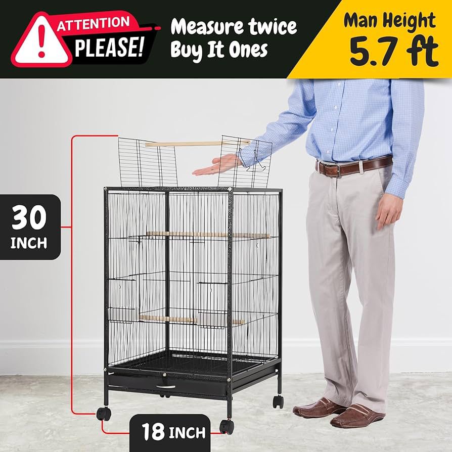 30-Inch Large Bird Cage, Heavy-Duty Metal Parrot Cage with Rolling Stand, Spacious for Macaws, Cockatiels, Budgies, Lovebirds, Finches, Canaries & Pigeons, Indoor/Outdoor Pet Bird Aviary